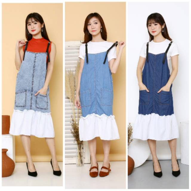 Baju Jumpsuit Overall Dress Rok Kodok Jeans Lentur Panjang S M L …