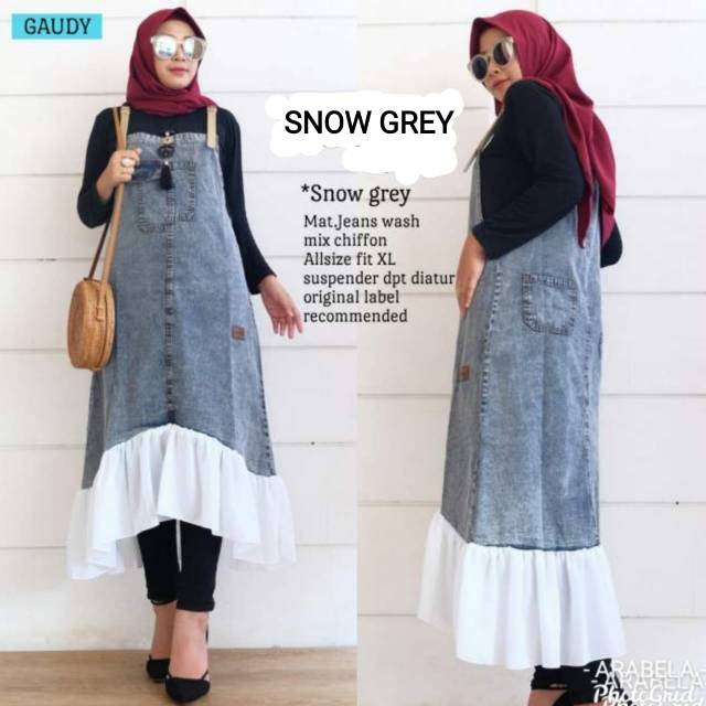 Baju Kodok Overall Selutut Bahan Jeans Mix Chiffon Trendy | Shopee …