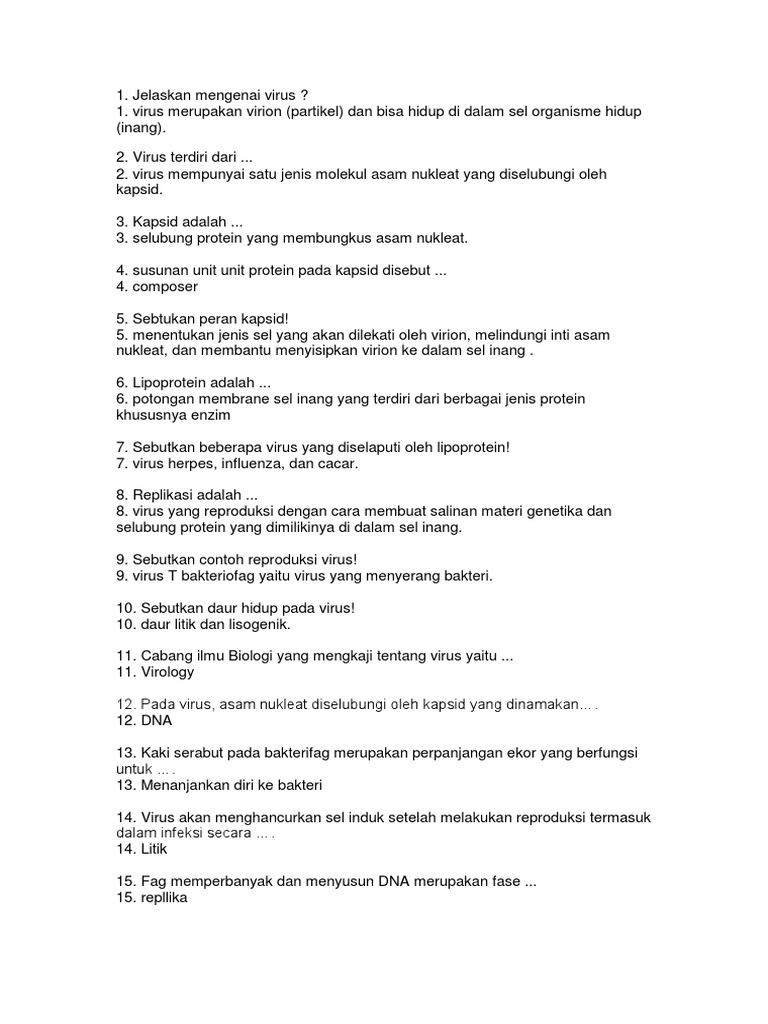 Soal Biologi Essay Bab Virus Kelas x