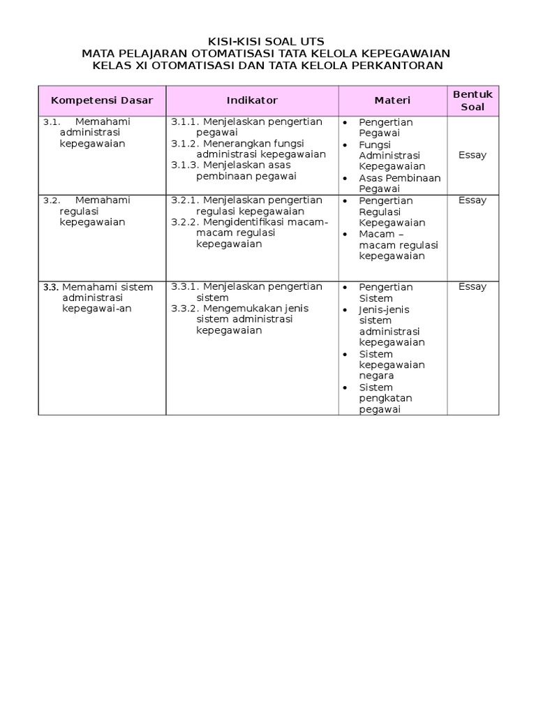 Contoh Soal Dan Jawaban Kepegawaian Kelas 11 - contohsoal.net