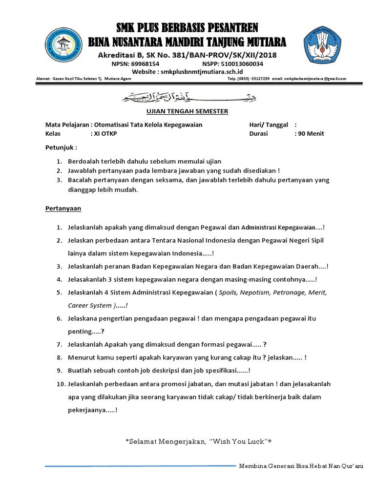 BANK SOAL ADMINISTRASI KEPEGAWAIAN SMK ~ Ganteung Euy