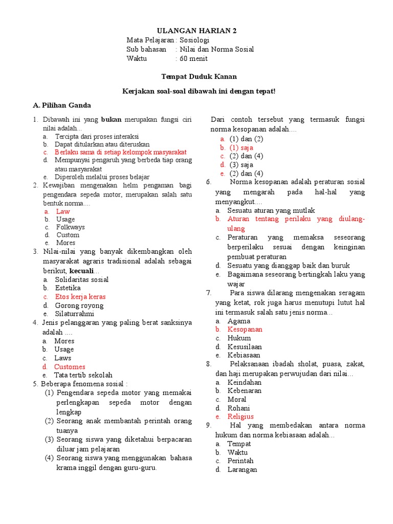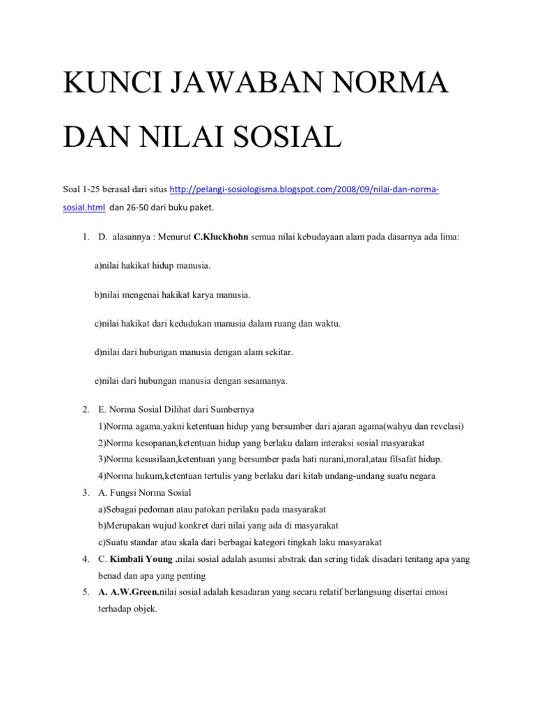 Soal Sosiologi : Nilai dan Norma Sosial dan Kunci Jawaban Lengkap Versi 2 - Muttaqin id