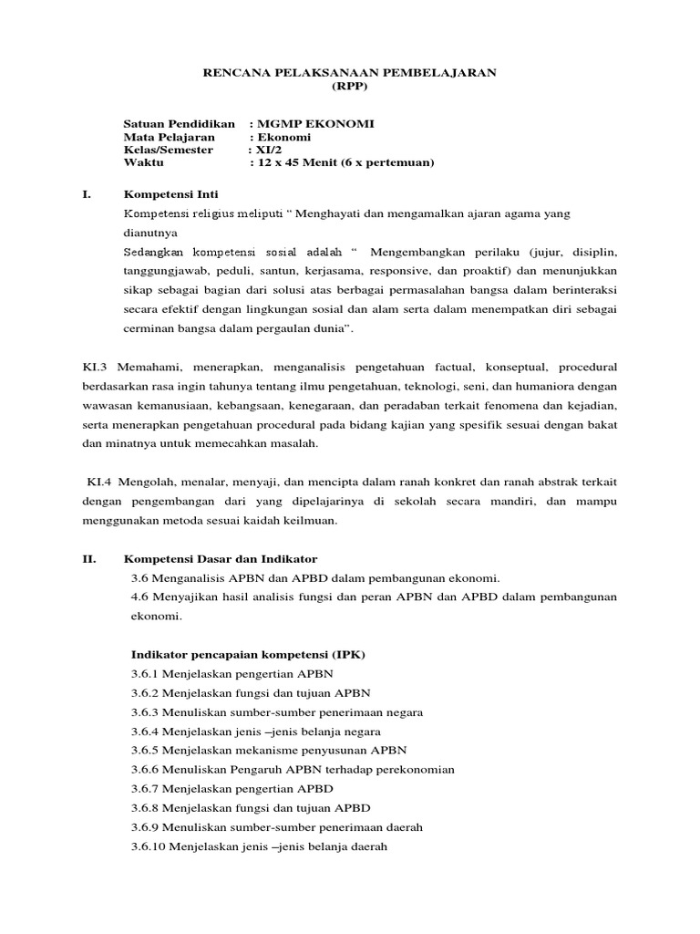 Rpp Eko Xi Kd.3.6 Apbn-Apbd