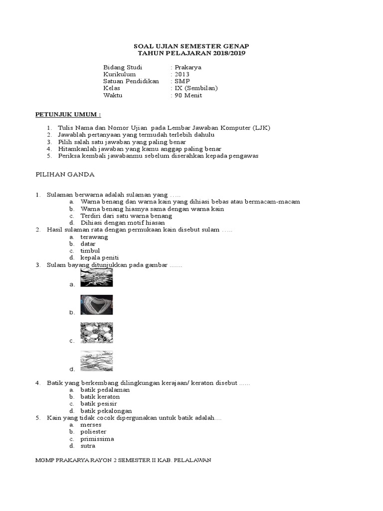 Latihan Soal Usbn Prakarya Smp Tahun 2018 (2)