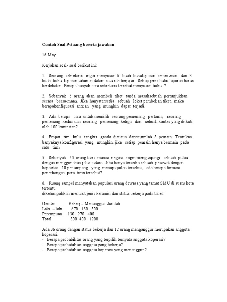 Contoh Soal Peluang Beserta Jawaban
