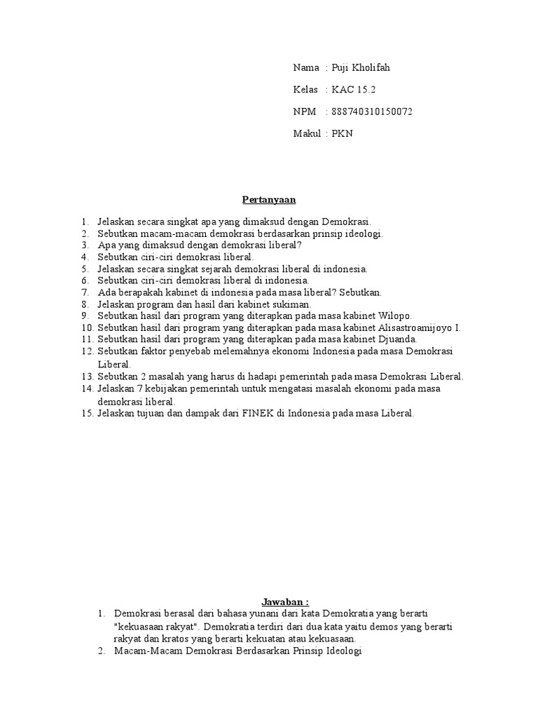 Soal Essay Tentang Demokrasi Dan Jawabannya