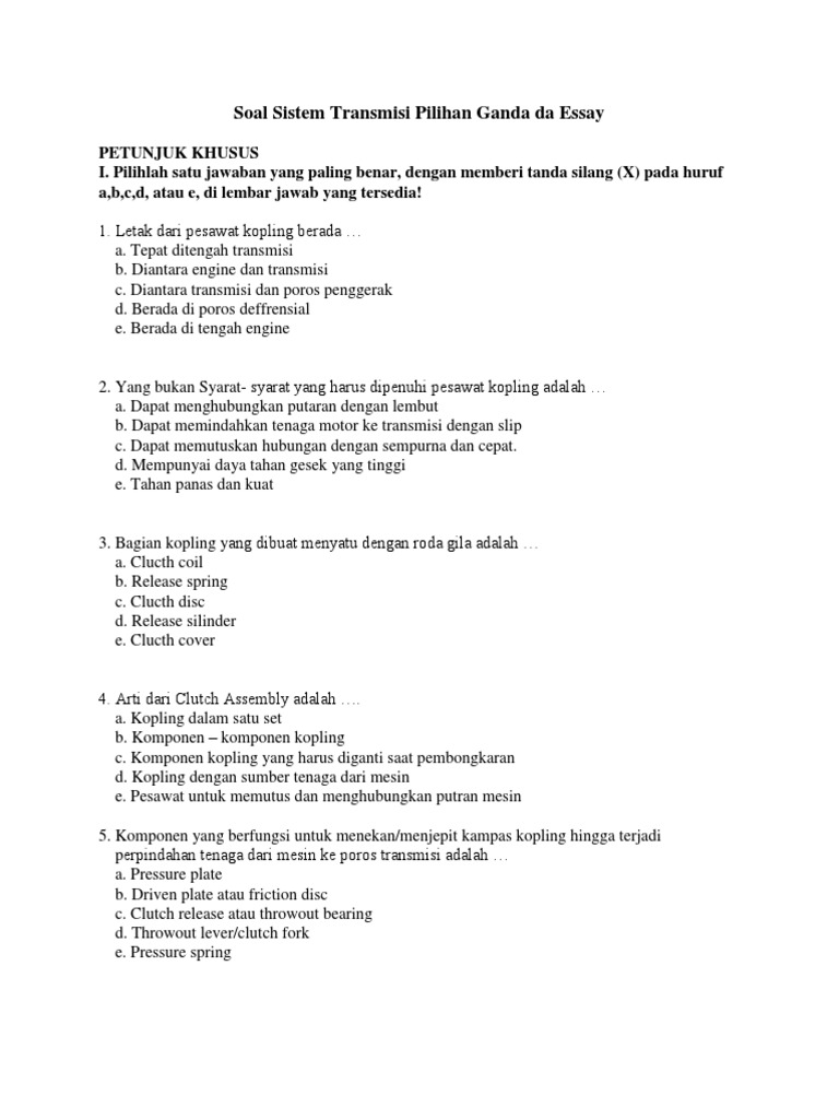 Kunci Jawaban Soal Essay Kopling Kelas Xi Tkr