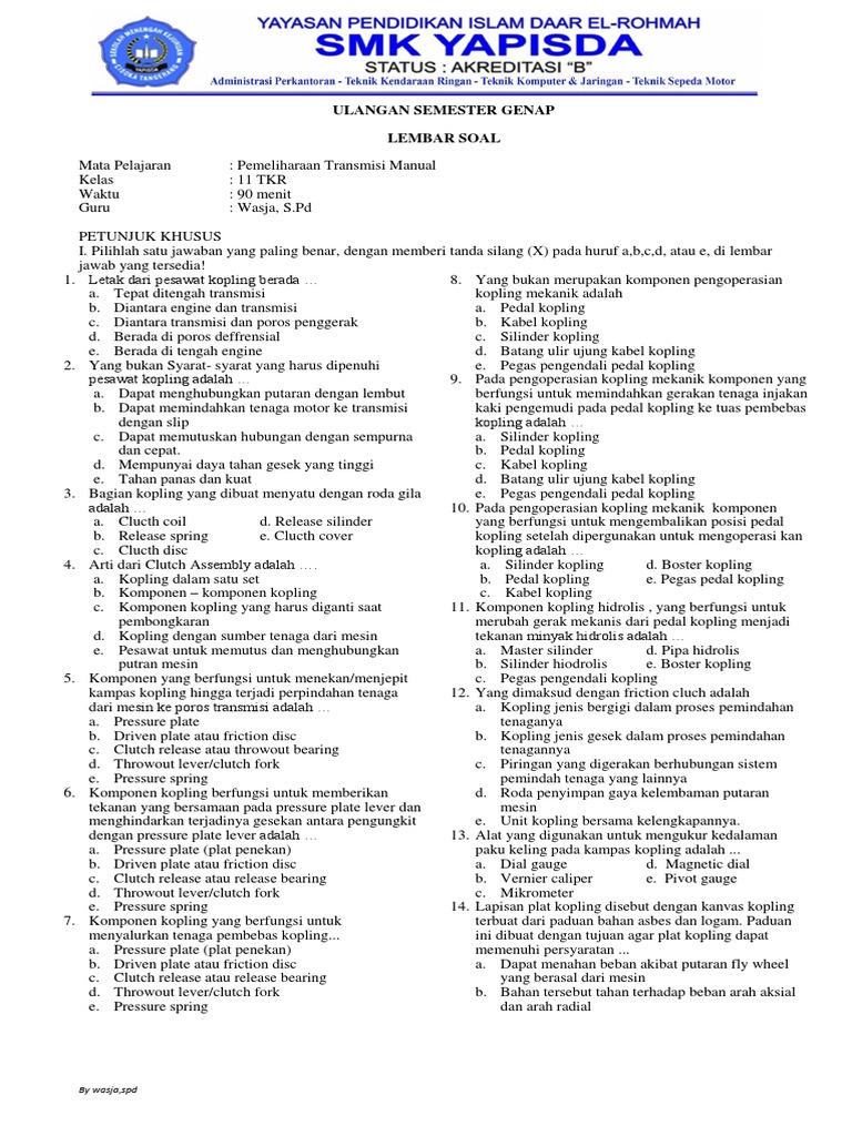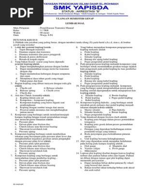 25 Soal Ujian Akhir Semester Transmisi Otomatis dan Manual SMK Otomotif - Griyachumaidi.com
