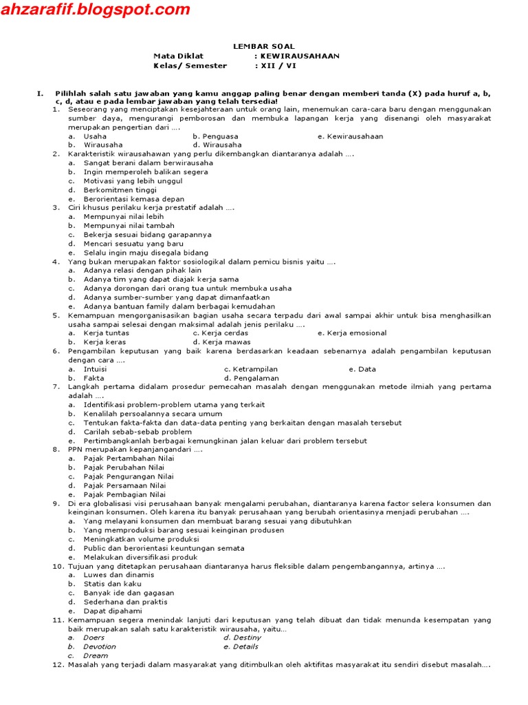 Kisi Kisi Soal Kewirausahaan Smk Kelas Xii Semester 148 | Eine …