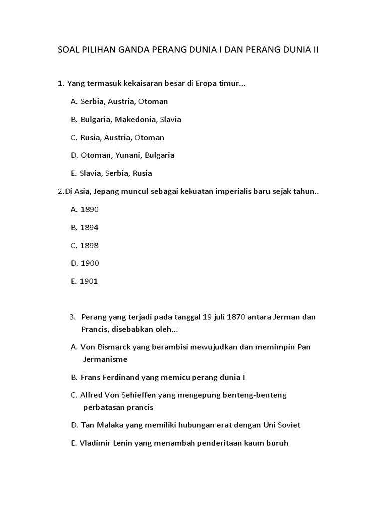Contoh Soal Perang Dunia 2 Beserta Jawaban - Dapatkan Contoh