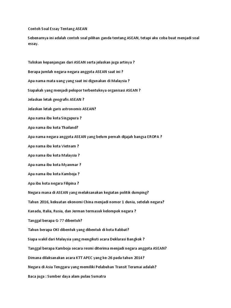 Contoh Soal Essay Tentang ASEAN