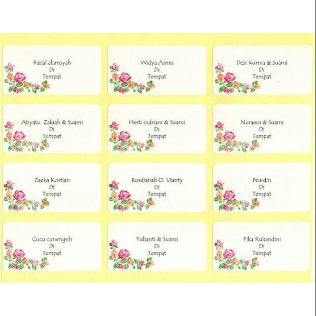 Print / cetak stiker label nama undangan biasa dan motif warna (Harga untuk 1 lembar / 12 Nama) | Shopee Indonesia