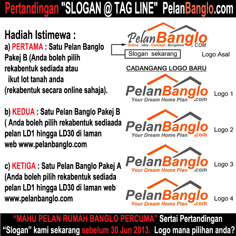 IDEA RUMAH IDAMAN ANDA (IDEA DESIGN BUNGALOW) + ( PELAN RUMAH BANGLO +PLAN BUNGALOW): MAHU PELAN BANGLO PERCUMA? Cepat Sertai Pertandingan “SLOGAN @ TAG LINE” untuk Pelanbanglo.com Sekarang.
