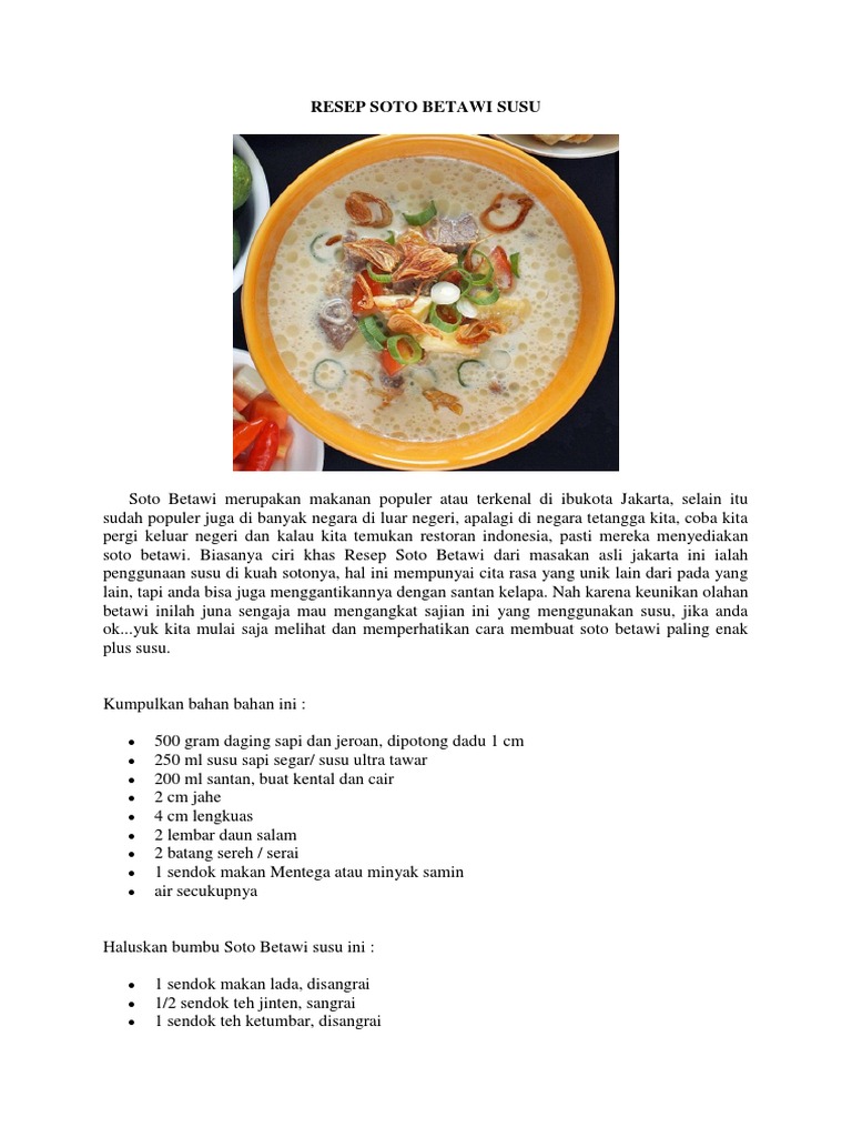 Resep Soto Betawi Susu