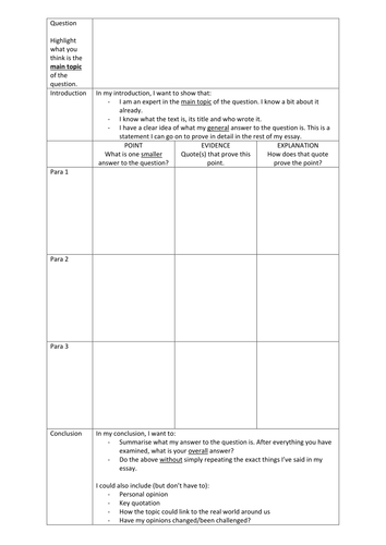 Essay Planning Template | Teaching Resources