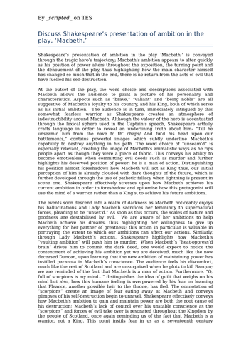Macbeth - Grade 9 example essay | Teaching Resources