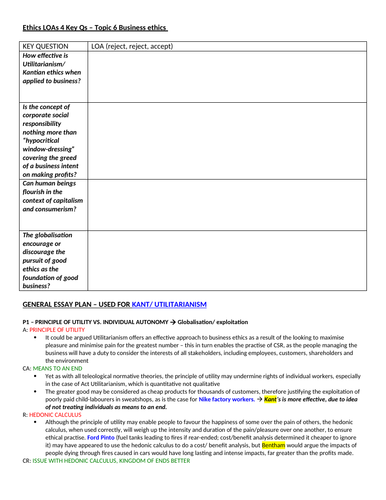 A level OCR Religious Studies 2018: COMPLETE ETHICS ESSAY PLANS …