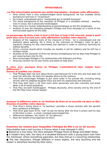 Intouchables - Essay Questions with markscheme | Teaching Resources