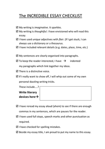 Checklist for Personal Essay Writing | Teaching Resources
