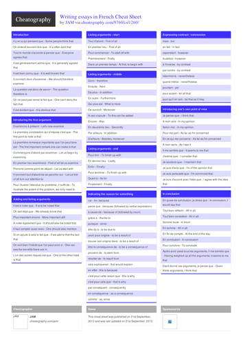 Expressions for writing A level essays in French | Teaching Resources