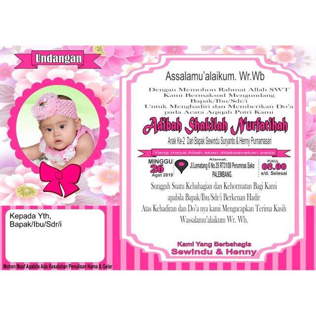 Jual Undangan Aqiqah / khitanan / ultah - Kota Palembang - pondok dhilah | Tokopedia