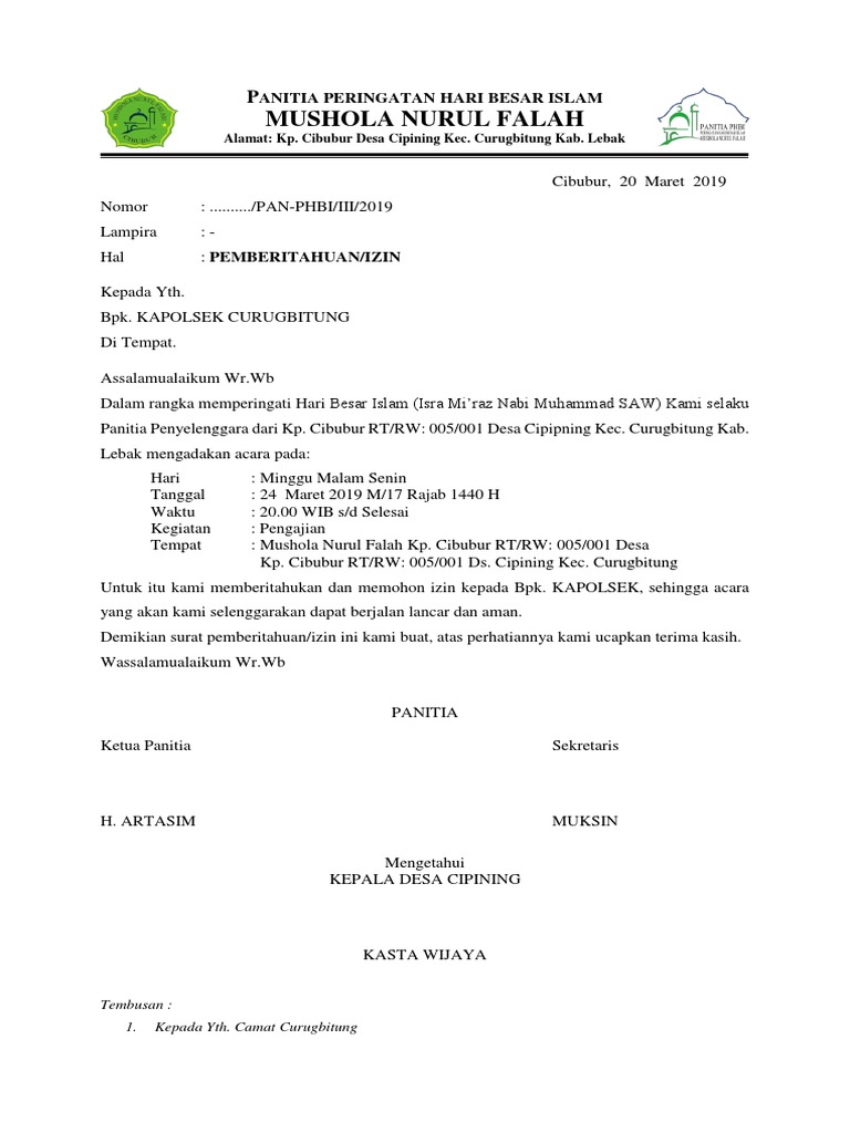 Contoh Surat Undangan Isra Mi Raj Di Masjid - Contoh Seputar Surat