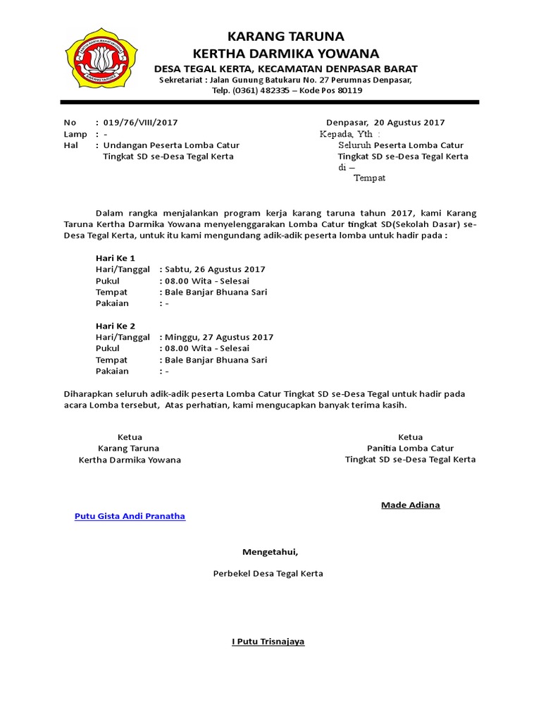Surat Undangan Lomba Agustus 2018