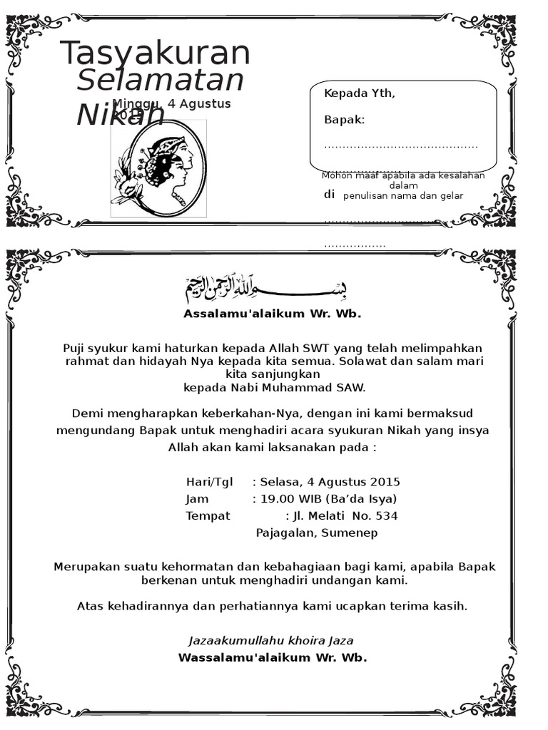 Contoh Undangan Syukuran, Pernikahan, Rumah baru, Wisuda, Bayi dan Haji Lengkap - Syahrulanam.com