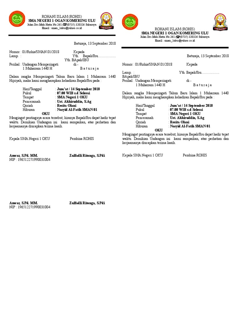 Contoh Surat Undangan Peringatan Tahun Baru Islam - Kumpulan Surat Penting