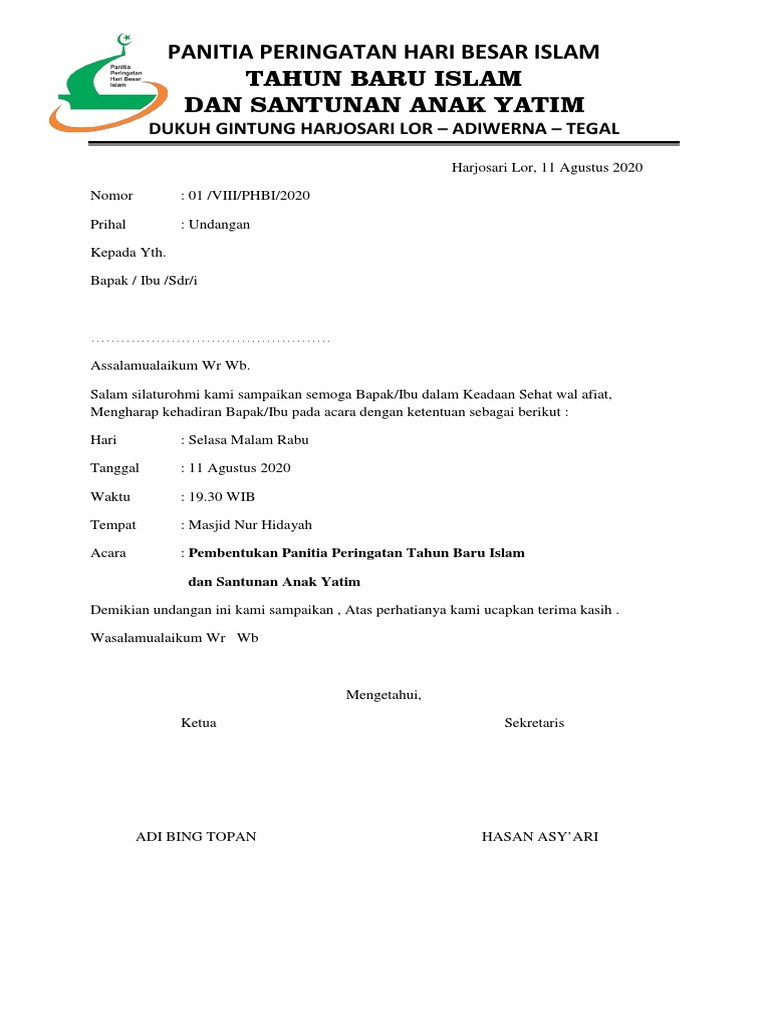 Surat Undangan Pembentukan Panitia Peringatan Tahun Baru Islam 1441 H Lengkap - SERBANDESO Blog