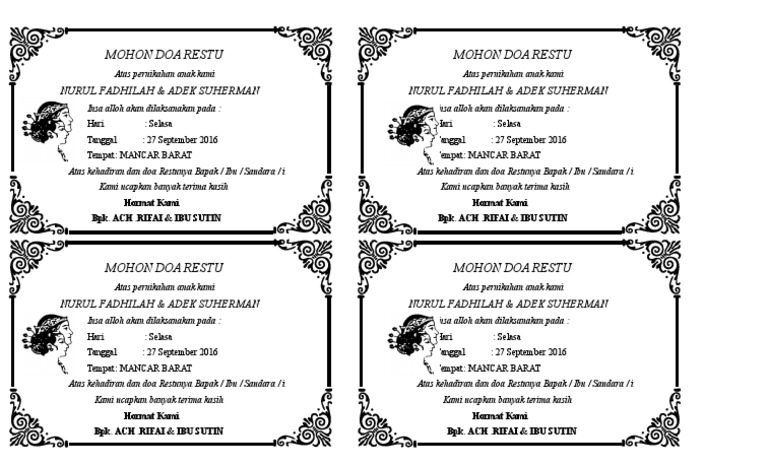 DOC) Contoh Surat Undangan Syukuran Pernikahan | Liwaassin Lampbara - Academia.edu